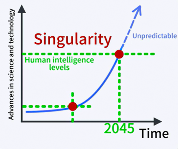 Futurist Ray Kurzweil, who considers singularity to be the timing at which artificial intelligence surpasses human intelligence, examined the pace of technological evolution, and predicted that the singularity would come in 2045.