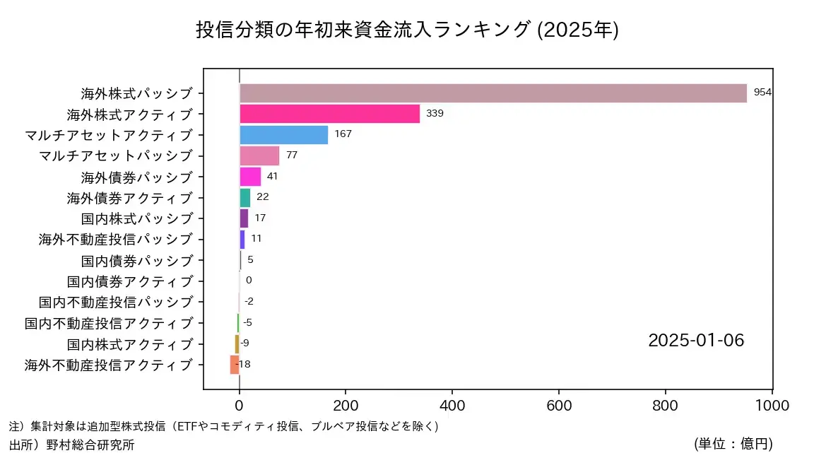 総じて、2025年は「海外株式パッシブ」が市場全体の牽引役となった一方で、アクティブ戦略や他の資産クラスについては、それぞれの運用特性や制度的要因に基づいて選別されるという、多様な投資行動が浮き彫りとなった一年であった。