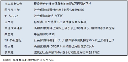 図表 衆院選での社会保険料引き下げ・社会保障制度改革についての各党の主張