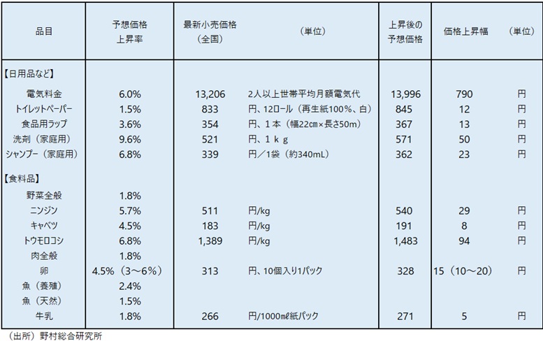 図表3は、3月末時点で確認されているエチレン由来の日用品の価格上昇とそれが家計に与える負担を試算したものだ。平均的な家計(4人家族)には、年間1.8万円~2.6万円程度の負担増加になる見通しだ。しかし、値上げの動きは今後さらに広がるだろう。
