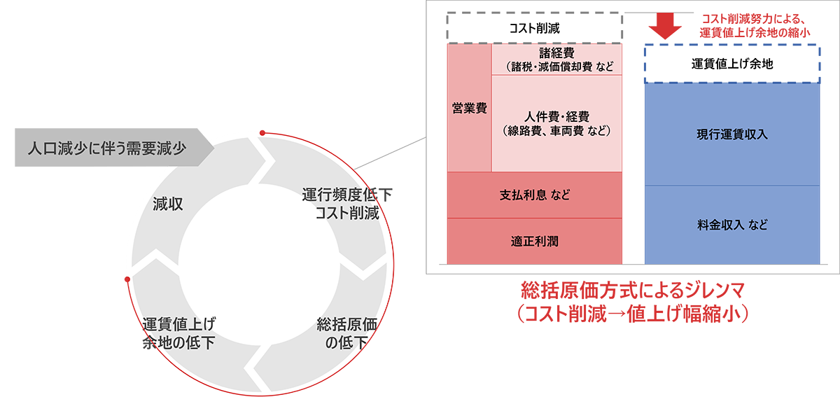図表3:鉄道運賃の総括原価方式とコスト圧縮努力のジレンマ
