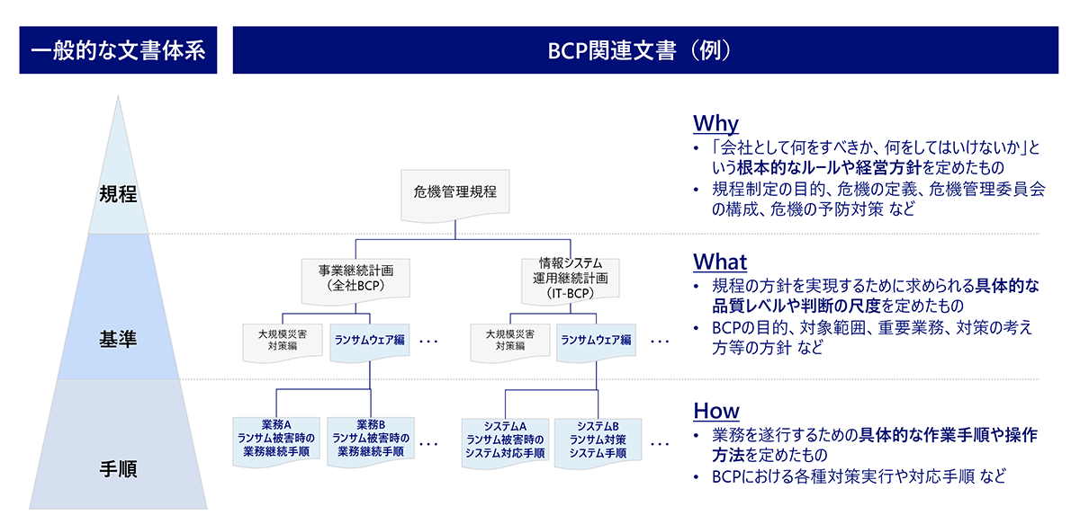 企業の業務継続に関わるリスクとしては、自然災害やランサムウェア被害以外にも、パンデミックなど多種多様なものが存在します。各企業の事業環境を踏まえ、リスクに応じたBCPが求められます。ランサムウェア被害に対しても、その特性を踏まえた専用のBCPが必要なのです。