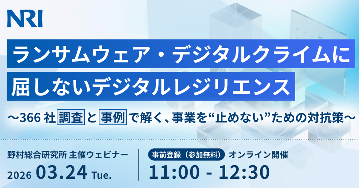 本ウェビナーでは、NRIが実施した「366社実態調査」の結果をもとに、日本企業のデジタルレジリエンスの現在地を客観的に解説します。