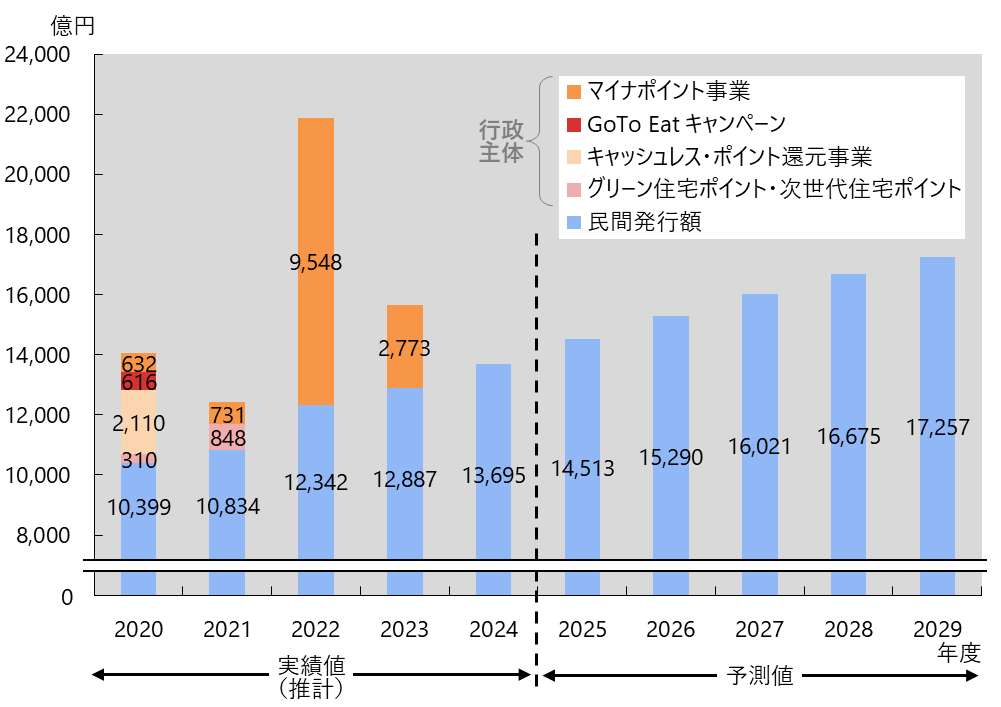 なお、2024年度は、ポイントを活用した大規模な行政施策が実施されなかったため、推計対象は民間発行額のみとしています。