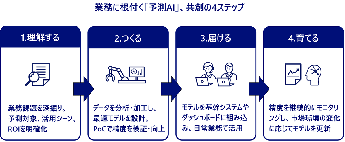 業務に根付く予測AI、共創の4ステップ